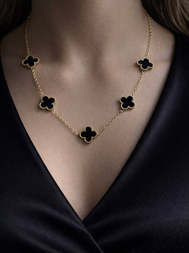 گردنبند استیل پنج گل مشکی ونکلیف