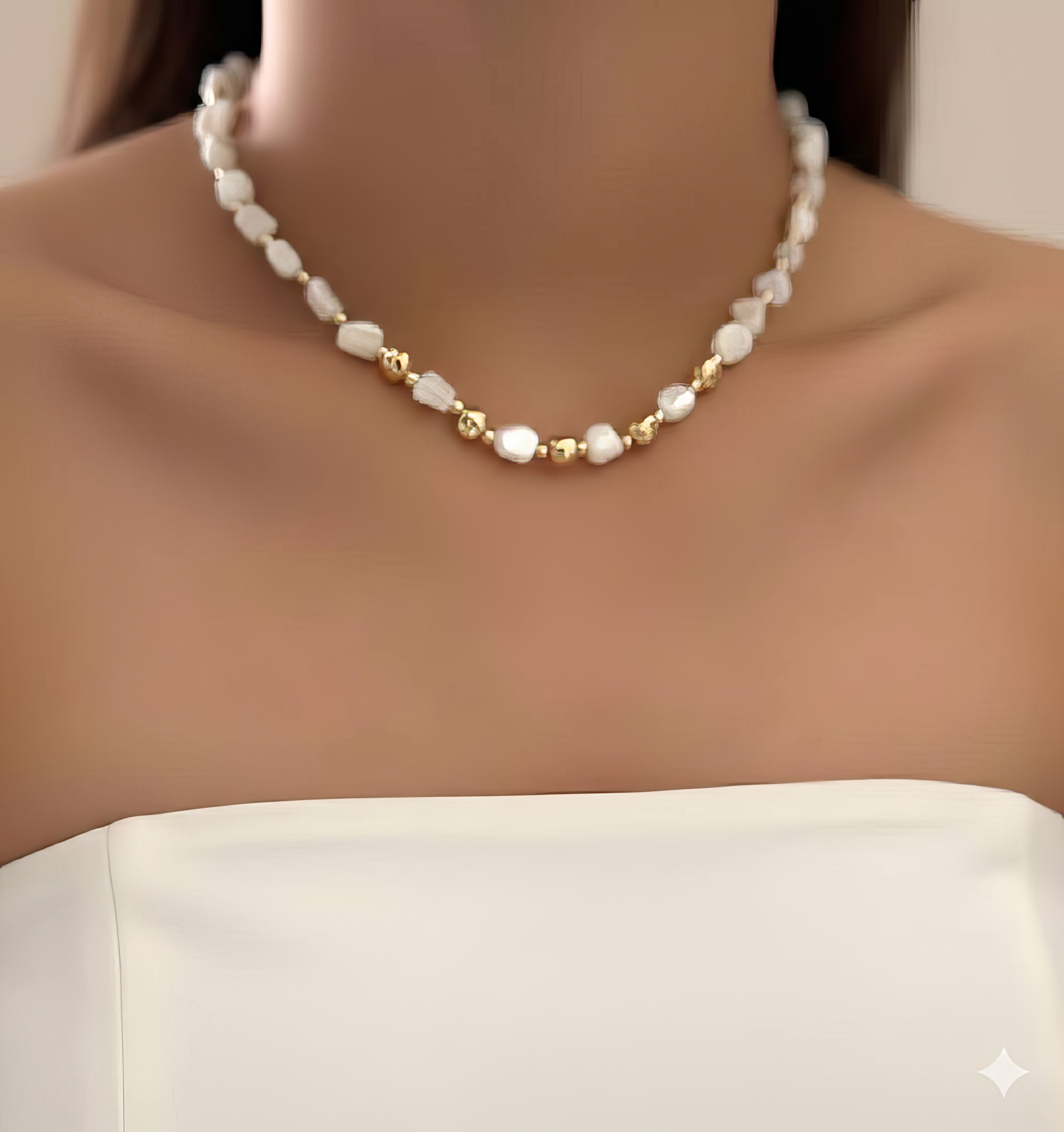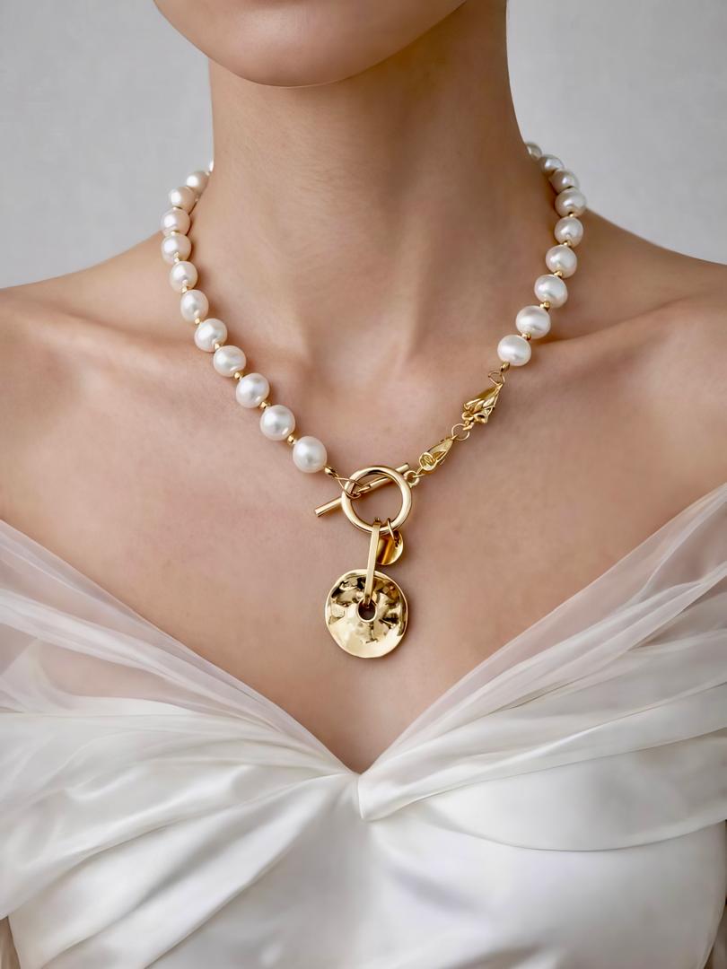 گردنبند مروارید دفورمه با قفل تی