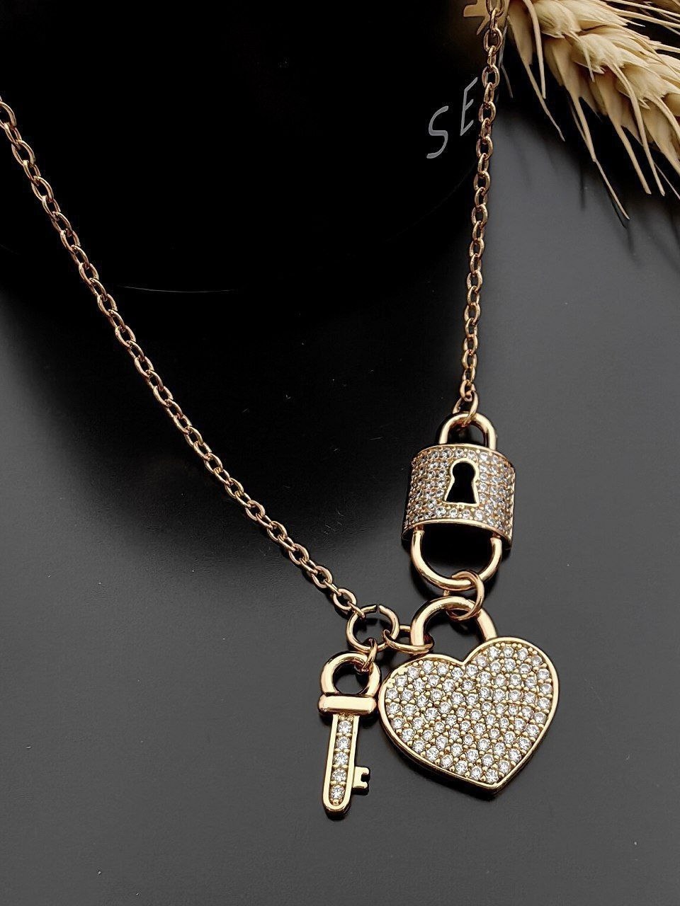 گردنبند ژوپینگ نگین دار قلبی قفل و کلید
