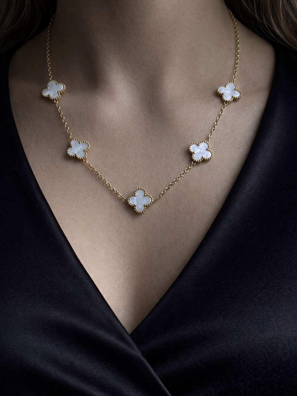 گردنبند استیل پنج گل سفید ونکلیف