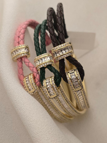 دستبند چرمی طرح طلا