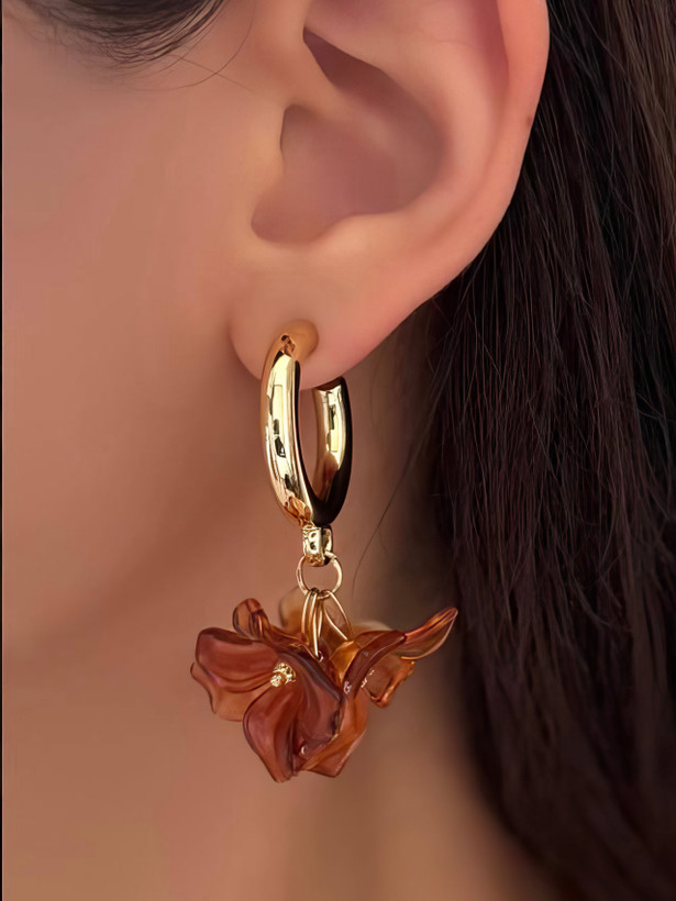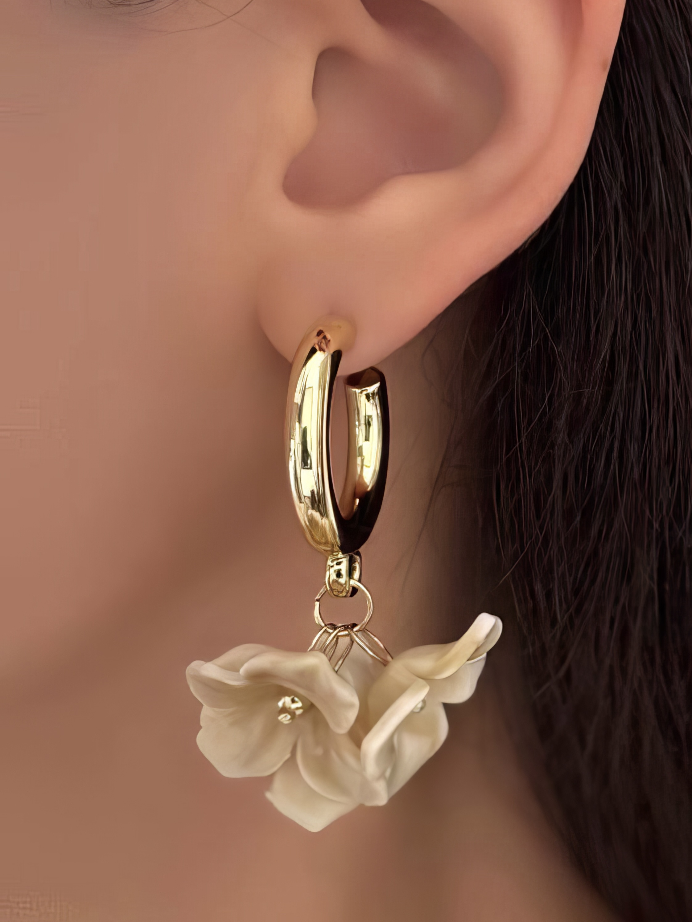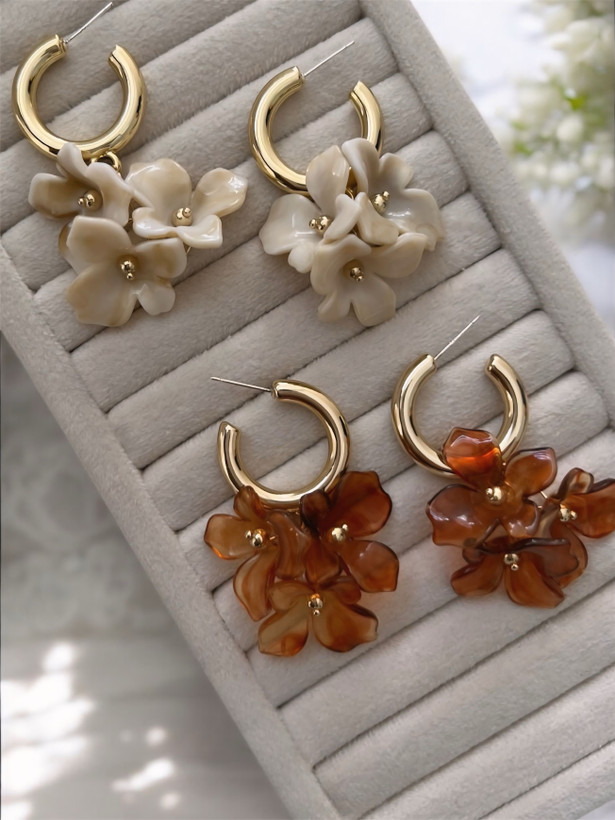 این گوشوارهها با طرح گل و حلقهی طلایی که دارن خیلی زیبا تو استایل دیده میشن و استایل رو از یکنواختی در میارن .