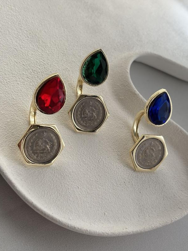 همچنین میتوانید آن را با گوشواره سکه و نگین قرمز ست کنید.