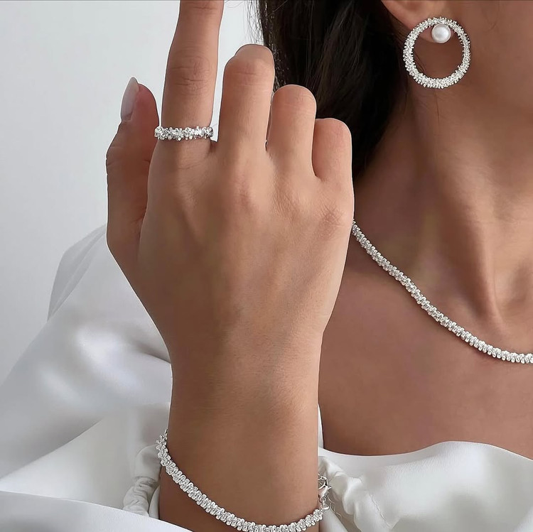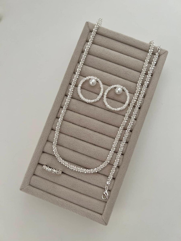 ست خاویاری با گوشواره مرواریدی و انگشتر