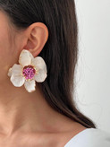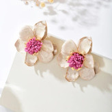گوشواره گل میناکاری با پرچمهای ارغوانی