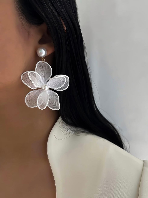 گوشواره گل پارچه‌ای مرواریدی