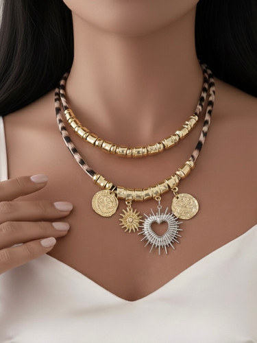 گردنبند دو ردیفه طرح زارا بند چرمی پلنگی