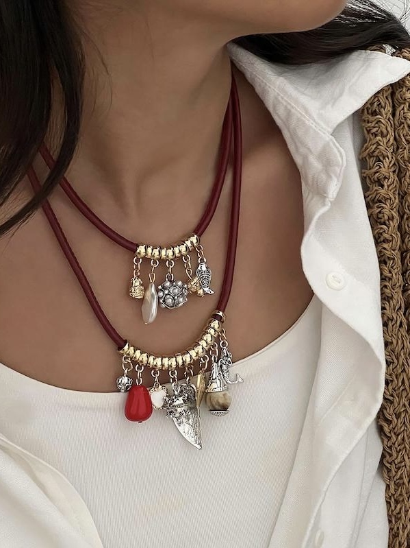گردنبند دو ردیفه طرح زارا بند چرمی پلنگی