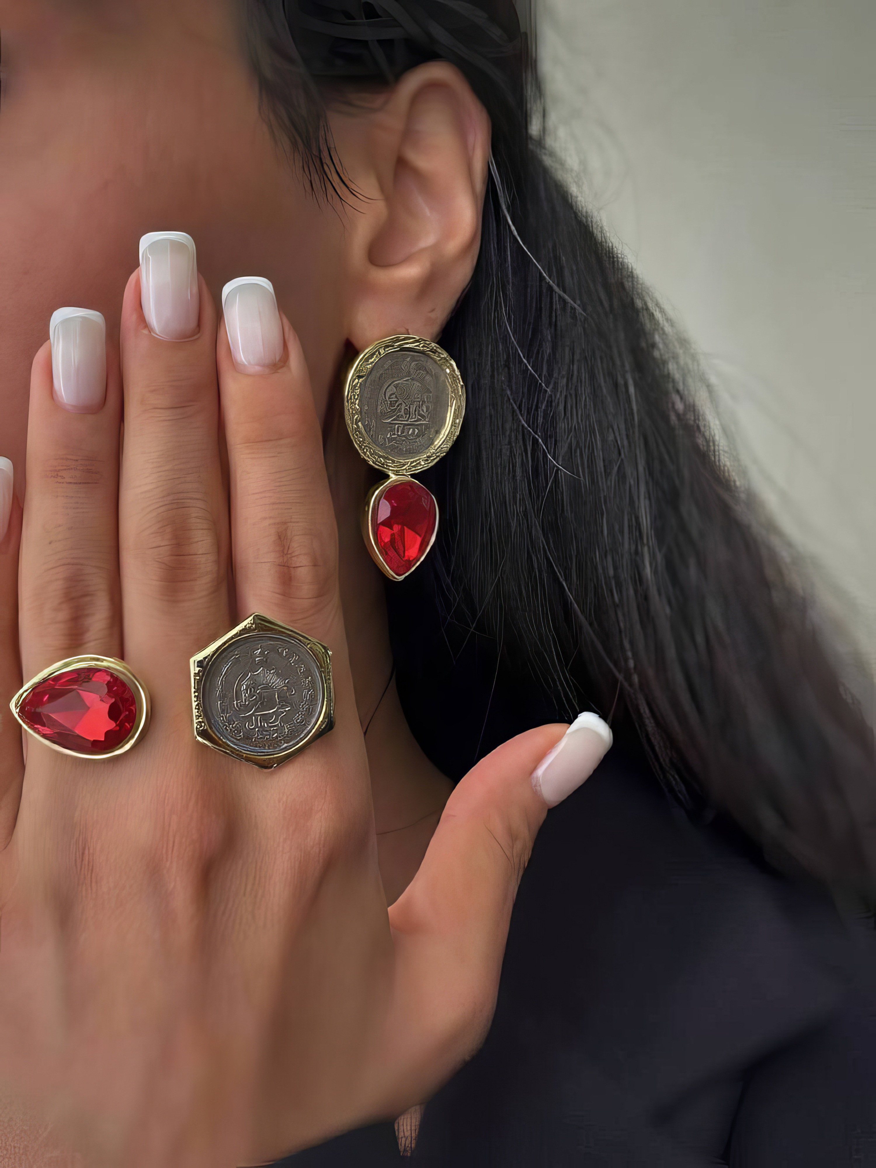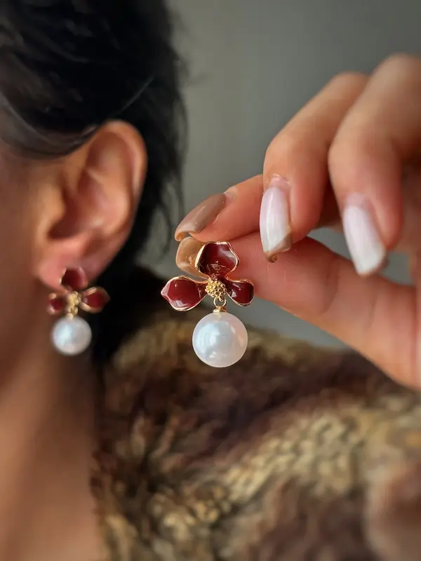 ست خاویاری با گوشواره مرواریدی و انگشتر